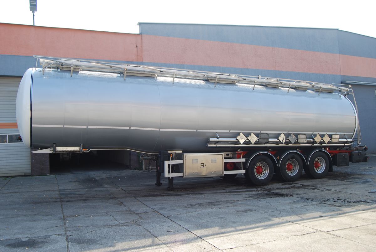 Cysterna FEBER do spożywki lub innych materiałów neutralnych, pojemność 28.300 litrów, 4 komory(7500/3700/13500/3600), masa własna 6.750kg, zbiornik i poszycie ze stali kwasoodpornej, izolowany, pompa, ogrzewanie stacjonarne webasto, układ mycia zbiornika, zawieszenie pneumatyczne, osie SAF, oś podnoszona, stan bardzo dobry, możliwość zamiany za inną cysternę.